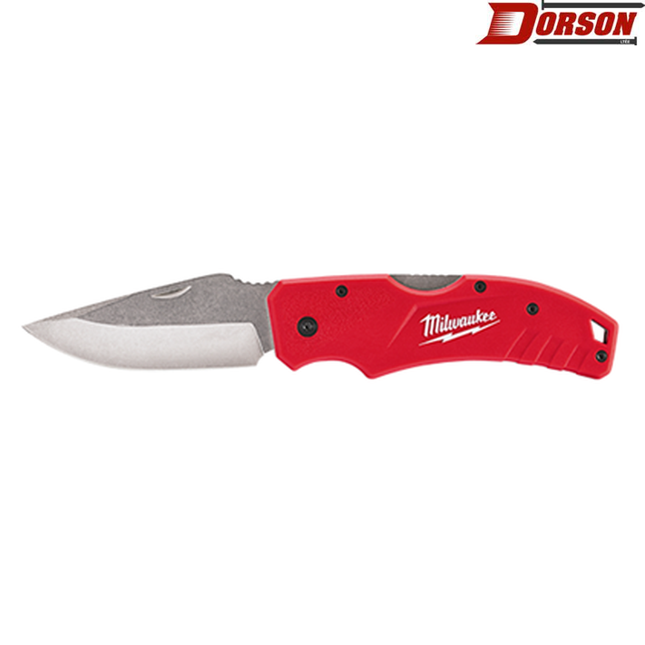Le couteau de poche de type Lockback de MilwaukeeMD est muni d'une lame en acier inoxydable qui présente une arête tranchante et durable. Le concept de type Lockback retient solidement la lame en position ouverte afin de procéder aux coupes difficiles et lors des utilisations intenses. Une entaille pour clou sur la lame améliore la prise et facilite l'ouverture. La poignée ergonomique présente une prise solide et confortable. Une agrafe de ceinture en broche procure des options de transport multiples sur la ceinture ou dans une poche sans effilocher le tissu. Une dragonne intégrée facilite le raccordement.